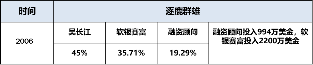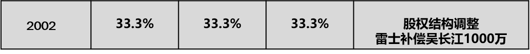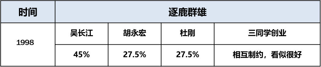 第一次大战,创始人之间相互罢免。胡永宏、杜刚联合罢免吴长江,因为供应商和中高层的一致反对而失败。最终吴长江反扑,轰走了胡永宏、杜刚,代价是付出了1.6亿元买断股份,并导致公司资金链接近断裂。如表3-4所示。