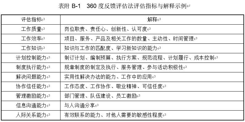 评估指标根据工作的职责进行设计,通用性比较强,如表附 B-1 所示。