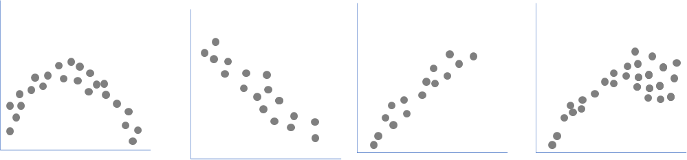 回归分析是通过考察一系列输入变量及其对应的输出结果,以建立数学或统计关系的一种分析技术,提高未来项目的绩效。通常情况下,散点图用于测定两个因素之间是否存在相互关系,回归分析则用于将这种关系以数学或统计关系表示出来。如图7-5所示,散点图(3)表示因变量和自变量之间成正相关,假设表示成公式为y=ax,那么该公式就是回归分析的一种应用和表示方法。