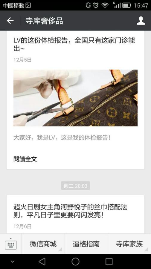 其中,寺库网发布的内容一般每期只有一条,而且所发布的内容基本都是干货,如解析奢侈品真假查验知识、商品保养细节、奢侈品代言人的娱乐消息等,多是从“行业专家、专业意见领袖”角度发布的信息。