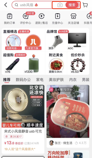 在抖音商城使用拍照搜索的功能,找同款进行比价,如图7.2所示。