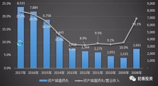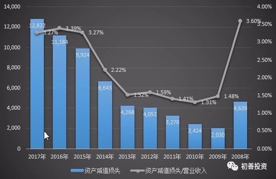 2017年A股所有上市公司计入资产减值损失的金额12822亿元,占2017年合计营业收入的391701亿元的3.27%。考虑到A股整体的净利率9.22%,也就是如果没有资产减值损失,那么A股整体的净利率可以提升至12.5%。