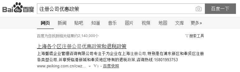 图8-15 在百度上搜索“注册公司优惠政策”的结果