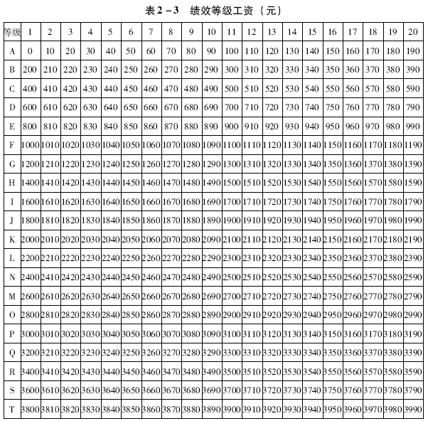 :对。还有一个绩效等级工资表,通过这些规定使员工的工资结构更加细化,更加明确,也让员工心里更清楚自己工资的构成。