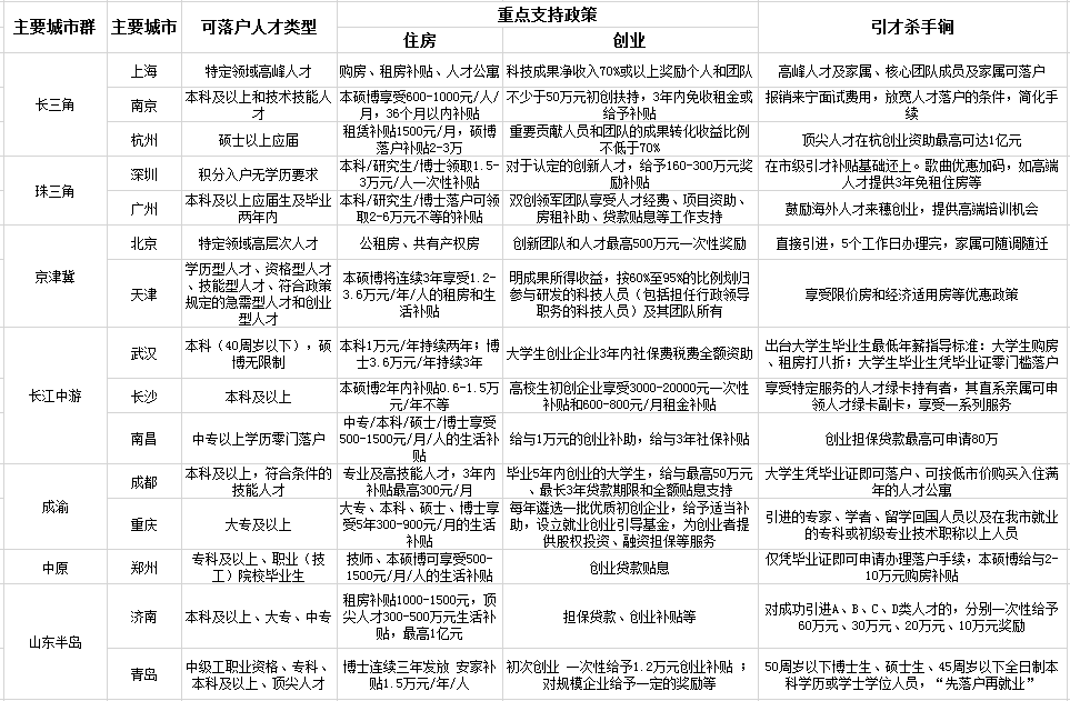 2018年以来,城市群各主要城市纷纷出台人口新政,拿出杀手锏,吸引高端人才落户。