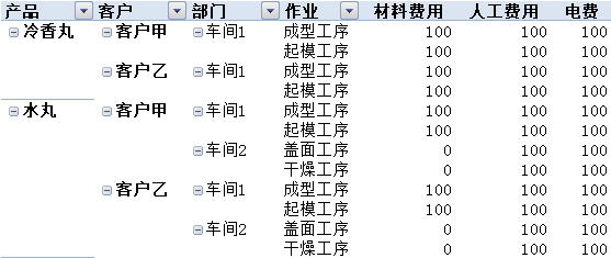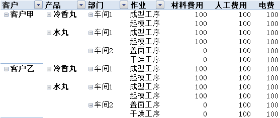 可查询产品与客户、部门、作业的任意组合的成本。