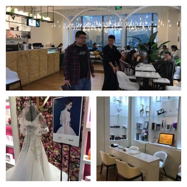 龙泽润宝也开展了品牌加盟,同样帮助加盟客户在终端门店设置咖啡厅、美甲区、婚纱区等场景。一是聚客流;二是促进销售转化。
