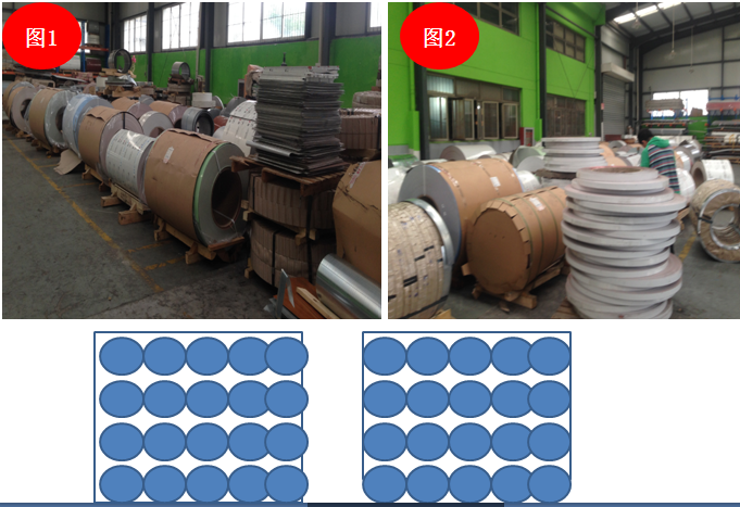 上图图1、图2是原料库,该原料库由于面积较小,产品堆放很密,直接把靠墙的原料挤在里面。如果要拿靠墙的原料,就要清理出一条路,这样每天得要多少工人去搬运,产生了浪费。