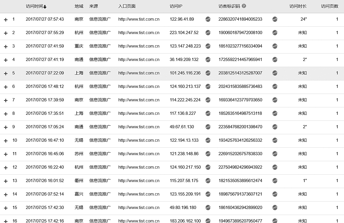 既然效果这么好,企业做了网盟广告效果一定不错,但事实是大多数企业,特别是B2B企业做了网盟广告之后都说没效果,最后不得不停止做网盟广告。如图3-6所示,这是一家变速箱维修厂的网站流量统计数据(变速箱维修行业是大宗的B2C,按理效果要比B2B企业好一些),在短短的10分钟内,网盟广告带来了24条跟变速箱相关流量。但注意这个数据的最后两列,这24条访问没有访问时长,访问页面数也只有1页。也就是说这24条来自全国各地不同IP地址和不同计算机上对企业网站的访问,点了就走,根本没有人看企业网站。这是明显的恶意点击,为什么会这样呢?