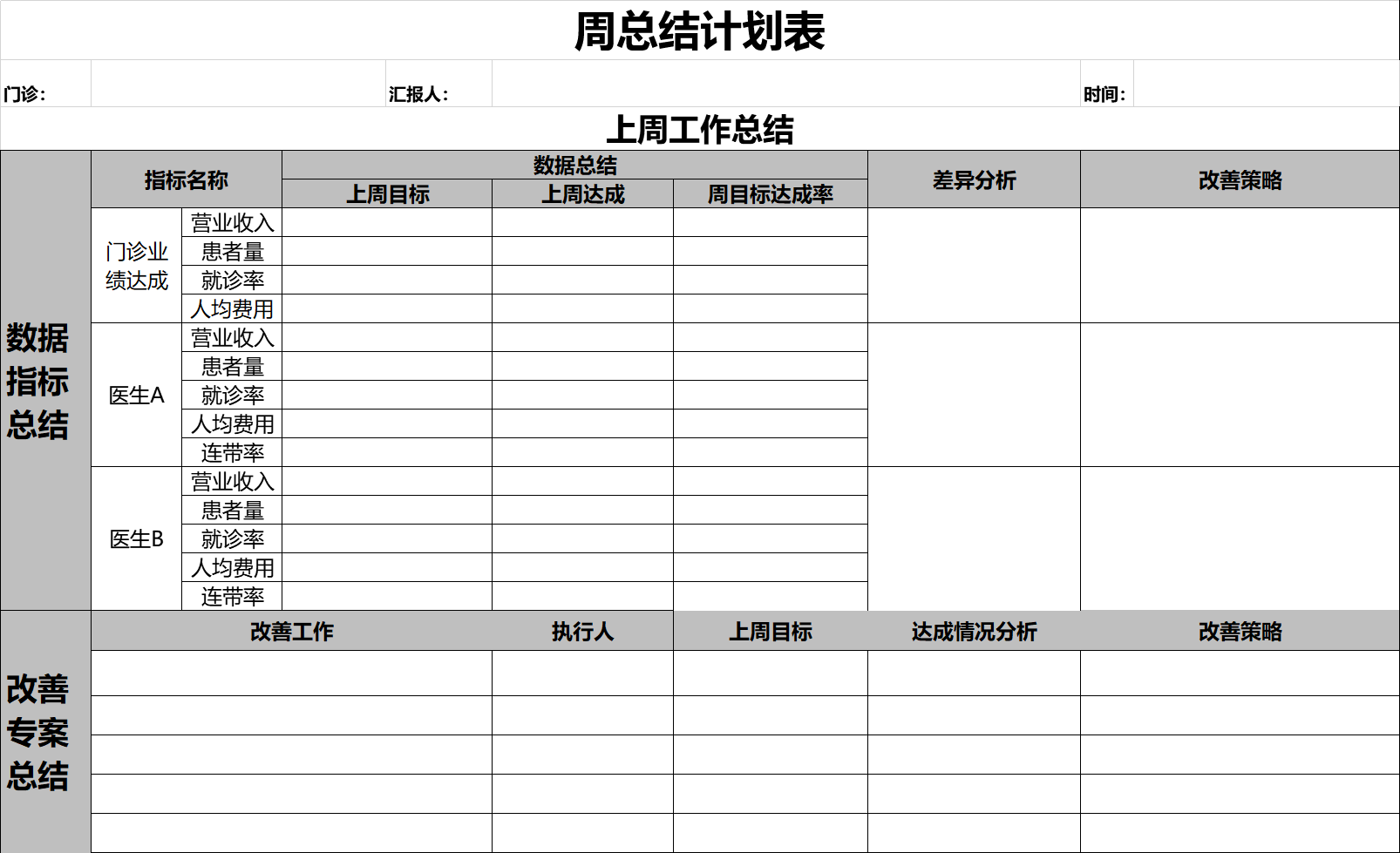 这张表的整体逻辑完全符合数字化业绩改善的逻辑,共分为两部分,一部分是上周工作总结,另一部分是本周工作计划。