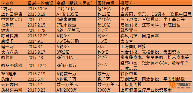 2017年以来,未名企鹅宣布数千万A轮融资、七乐康布局“互联网医疗综合体”并获融资、药师帮完成1.1亿人民币融资、1药网与碧生源达成战略合作、健客与多家药企、保健品厂商达成合作等。