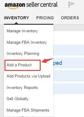 经过充分的准备后,企业终于迎来新品上架的阶段。如下图所示,进入亚马逊后台选择“库存-添加新商品”(Inventory-Add a Product),即可进行产品上架。