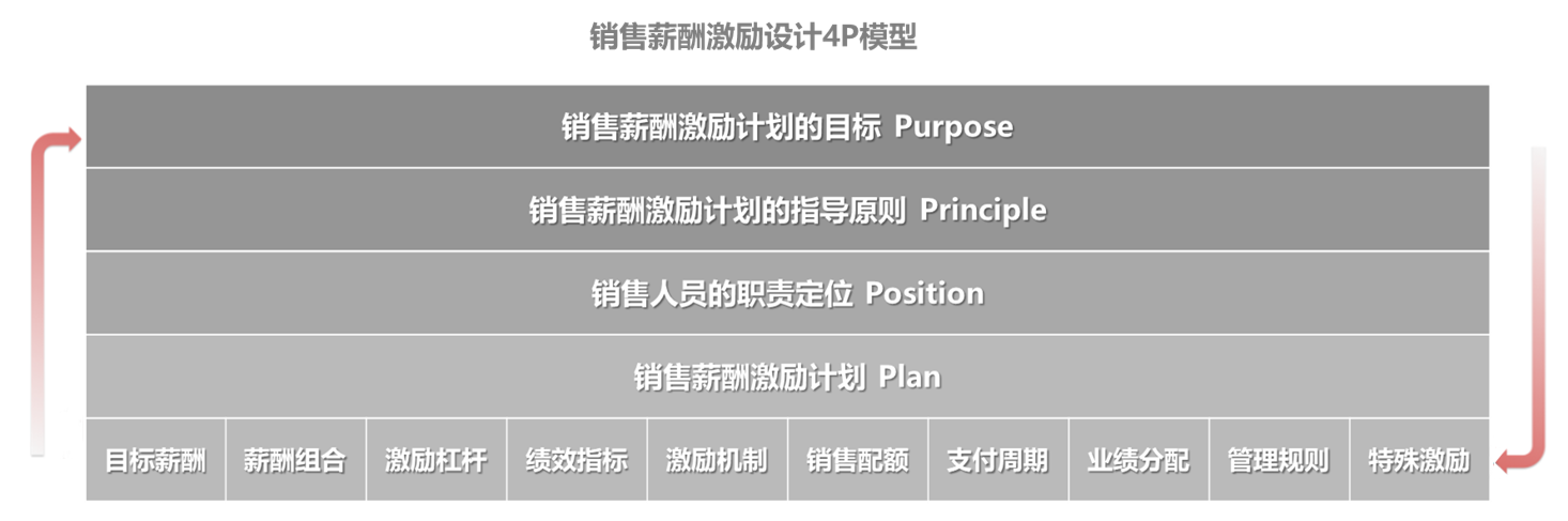 对任何销售薪酬设计人员来说,设计有效的销售薪酬激励计划都是一项挑战。设计人员需要使用一套结构化和逻辑化的方法以确保设计过程顺利和高效。销售薪酬激励设计4P模型提供了一个循序渐进的框架,帮助设计人员完成销售薪酬激励计划的准备、设计、构建、建模、评估和管理。4P代表销售薪酬激励计划的四个构成部分,即目标(Purpose),指导原则(Principle),岗位职责定位(Position)和计划内容(Plan)。这四个词的英文首字母都是P,简称为4P。