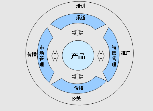 这种以产品为中心的营销战略模式,是中国企业比较普遍采用的营销组合方式。理论上虽然有将中心位置的“产品”换成“顾客”“价值”“品牌”等,但只是着眼点或视野不同,战略导向的自闭性上没有本质的区别。