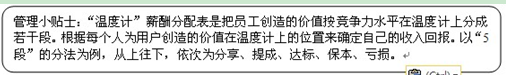 例如,在海尔的SBU体系中所采用的“温度计”管理法,经营单元对员工的绩效结果进行分层,对不同层次给不同的奖励。把员工创造的价值按竞争力水平在温度计上分成若干段。以“5段”的分法为例,从上往下,依次为分享、提成、达标、保本、亏损。