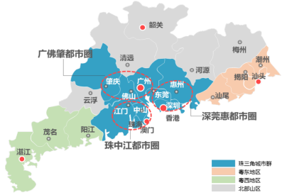 珠三角城市群属于城市群发展的第二阶段,以强核外溢为主要特征,核心城市深圳、广州存在外溢,其周边的佛山、东莞、惠州等城市市场较热;
