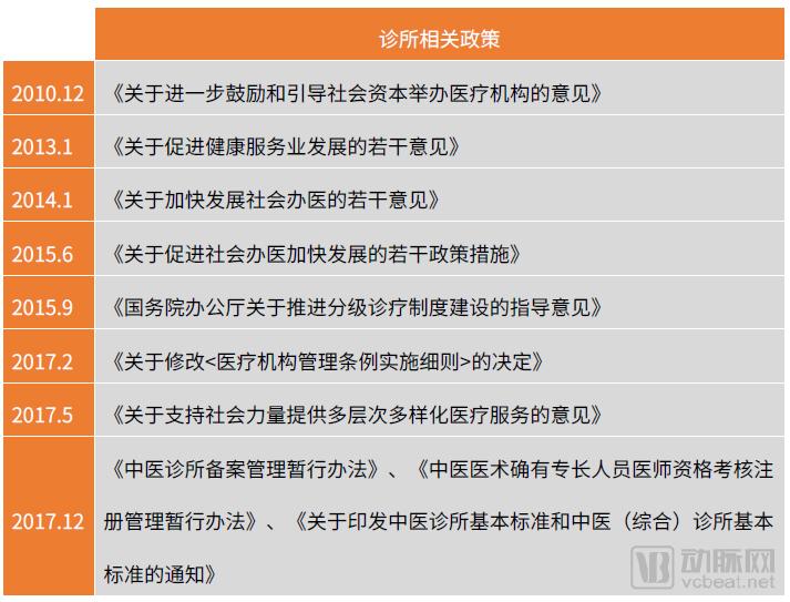 2015年3月,国务院办公厅印发《全国医疗卫生服务体系规划纲要(2015-2020年)》,明确提出个体诊所的设置不受规划布局限制。2017年5月,《关于支持社会力量提供多层次多样化医疗服务的意见》再次强调,凡符合规划条件和准入资质的民营医疗机构,主管部门不得以任何理由限制,同时精简、整合审批环节。对社会办医疗机构配置大型医用设备可合理放宽规划预留空间。个体诊所设置不受规划布局限制。