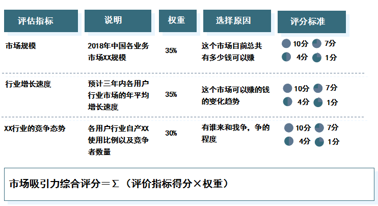图:确定各业务的市场吸引力评估指标的权重和评分标准