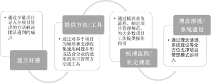 那么如何从0开始筹建PMO呢?需要结合企业情况逐步推进,不可急于求成。