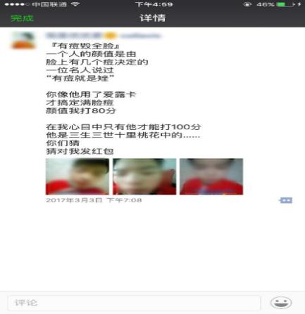 植入广告没有详细说明产品功效,原因在于:首先,痘痘成因很复杂,很难通过几行文字讲清楚;其次,太生硬插入不如设置诱饵,通过私聊来阐述产品功效。