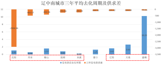 辽中南城市群住宅供应去化年限为1.38年,去化周期小于3年的有8个。整体来看,整个辽中南城市群供不应求。