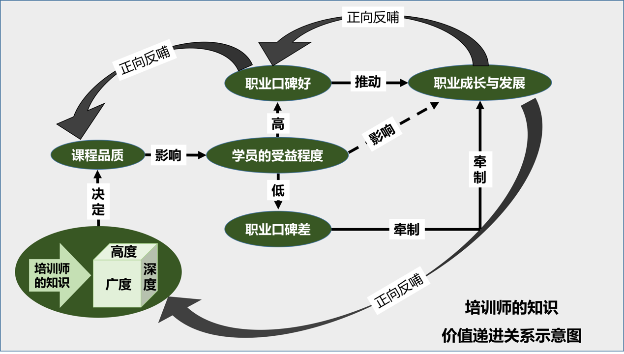 培训师的知识积累,最终会影响到自身的职业成长与发展,而职业的不断成长与发展又会促进培训师积累更多的知识。