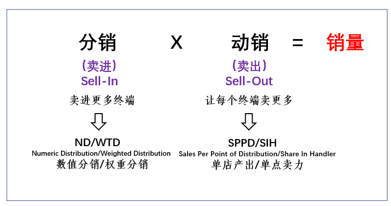 分销就是“卖进”,就是Sell-In。一般权威的AC尼尔森通过数值分销和加权权重分销指标来衡量,对我们一线销售说白了就是你要在你所覆盖和管辖的市场中尽可能卖进更多新的门店、新的终端。