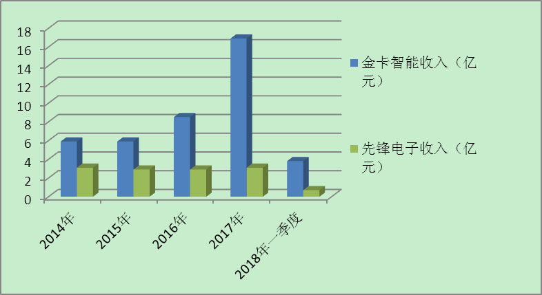 18年1季度金卡智能收入3.8亿,利润0.88亿;