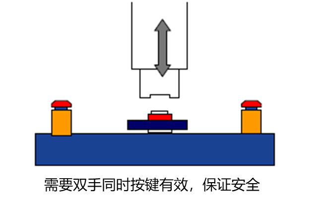 案例 1.开银行保险箱时,需以顾客之钥匙与银行之钥匙才能将保险箱打开 2.操作冲床的工作,双手必须同时按操作钮下去,才能执行工作。如果再加一个光栅保护,可以实现双保险 3.危险物品的保管 |