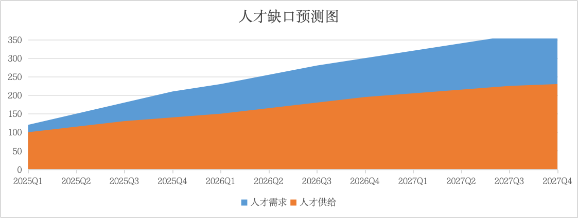 蓝色区域显示了两者之间的缺口,即人才紧缺趋势。