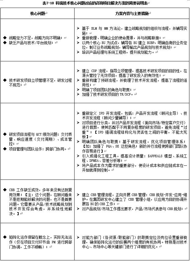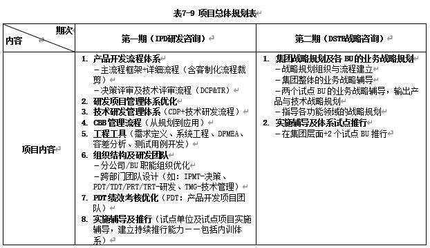 表7-14 IPD研发咨询项目实施安排表