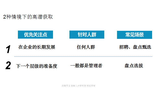 业绩贡献 | 履历考察,2~3年绩效分析等 |
