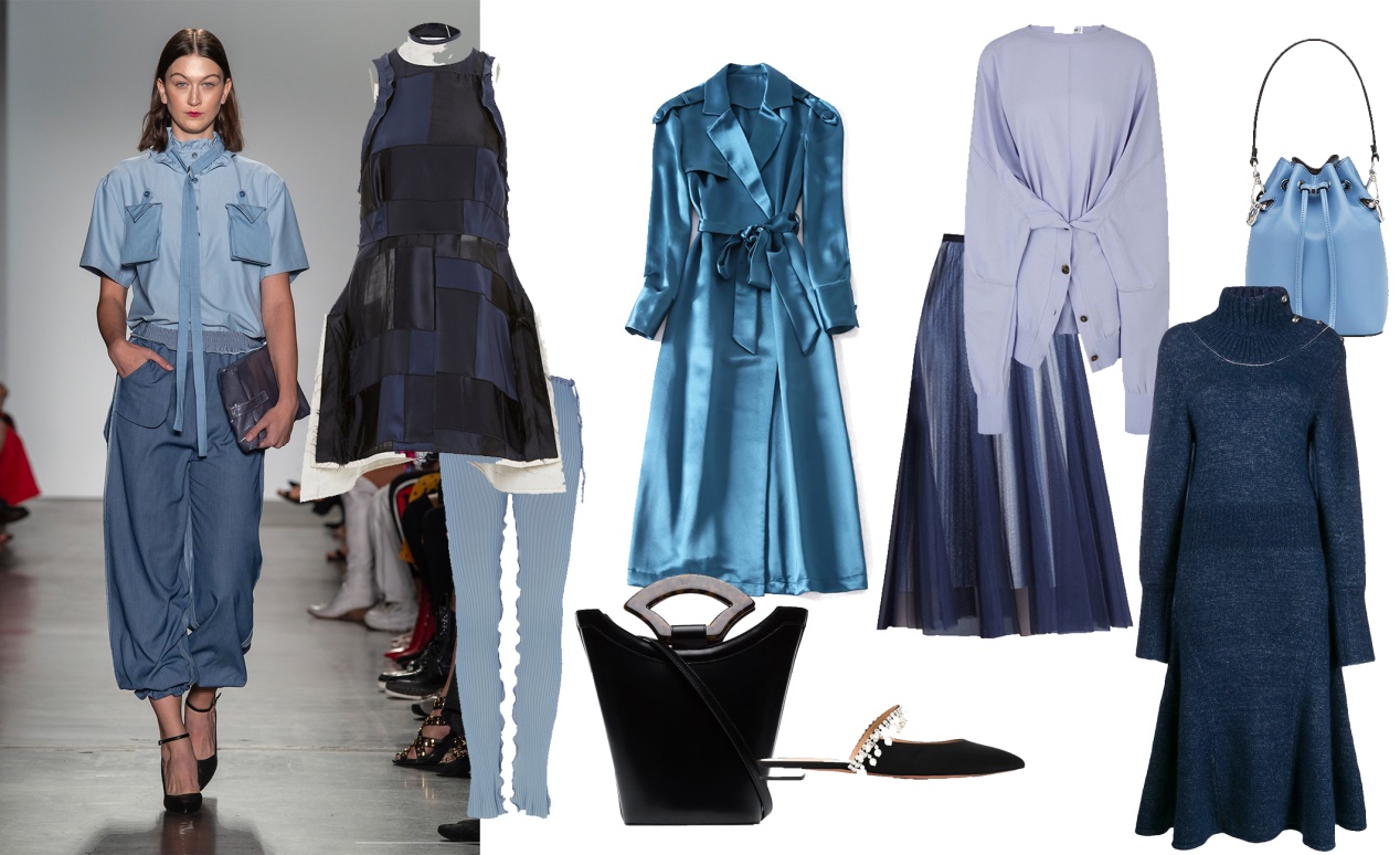 深邃忧郁的货品基调:蓝色是最冷的颜色,也是天空和大海的色彩,也是永恒的象征。人们在凝视大海与天空的时候,心情通常是宁静的,宁静过后会带有一丝落寞与忧郁,因此蓝色的英文BLUE常代表忧郁的心情和状态。蓝色像是万鸟翱翔后的天空和千帆过尽后的大海,宁清、深邃、纯粹又遥远。如图8-26所示,冷色调的相互搭配增强了蓝色的忧郁感。